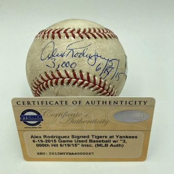 Incredible Alex Rodriguez 3,000 Hit Game Used Signed Inscribed Baseball STEINER . If a product is unsigned or non game-used, a hologram will not be included. Alex Rodriguez memorabilia. New York Yankees memorabilia. Item weight: 1 lb. Manufacturer: Sports Memorabilia.